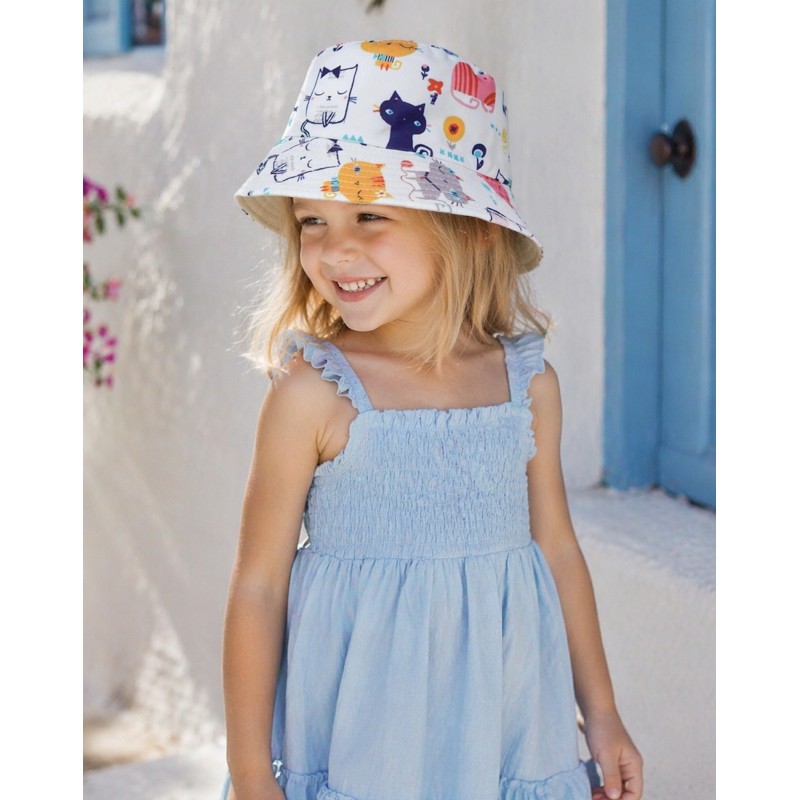 Ella Jonte Wendbarer Mädchenhut mit süßem Katzen-Print und uni beige Innenseite
