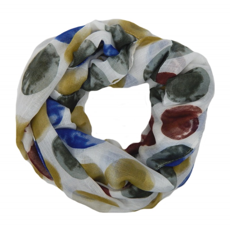 Verleihen Sie Ihrem Outfit eine frische, moderne Note mit dem sommerlich-leichten Loop von Ella Jonte. Der Rundschal überzeugt mit seinem harmonischen Farbspiel in Off-White, verziert mit abstrakten Punkten in Blau, Grün und Gelb – ein stilvoller Eyecatcher für jede Gelegenheit.