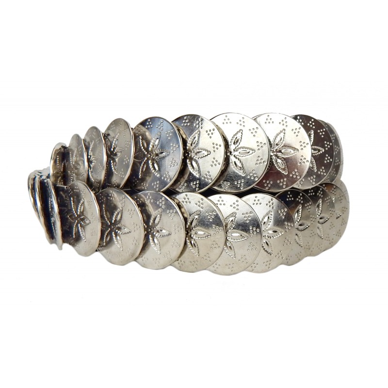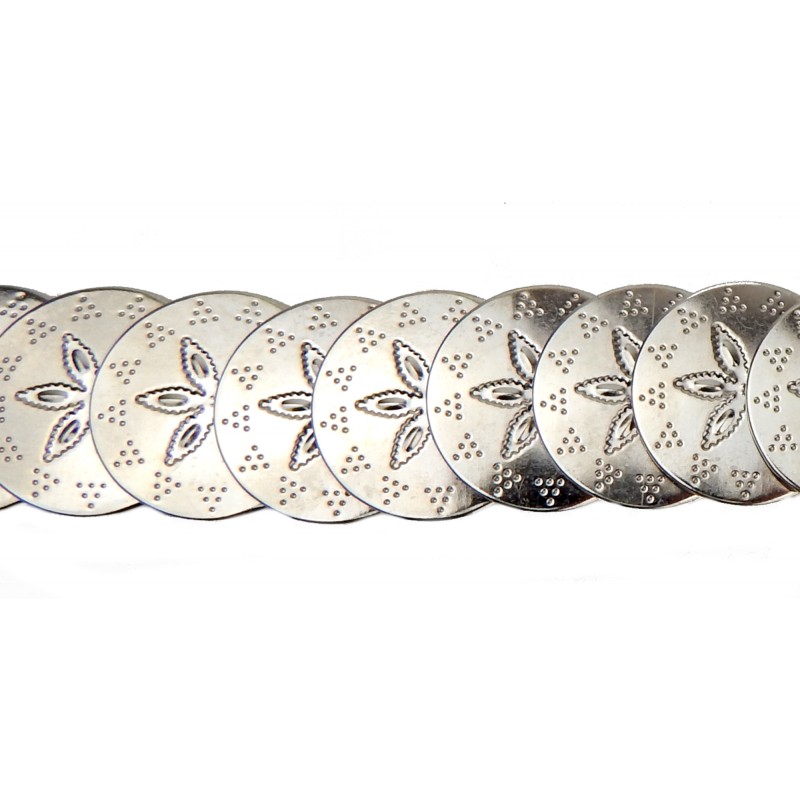 Dieser stilvolle, elastische Gürtel passt sich dank des Stretchmaterials perfekt an Taillen von 75 bis 100 cm an. Der Gürtel besticht durch sein Ethno-Muster mit glänzenden Metallmünzen, die nicht nur als optische Akzente dienen, sondern auch eine individuelle Note verleihen. Ob zur Jeans, als Kleidergürtel oder für das nächste Festival – dieses Accessoire aus Elasthan und Metall ist das ideale Statement-Piece für jede modebewusste Frau, die Wert auf Qualität und Stil legt.
