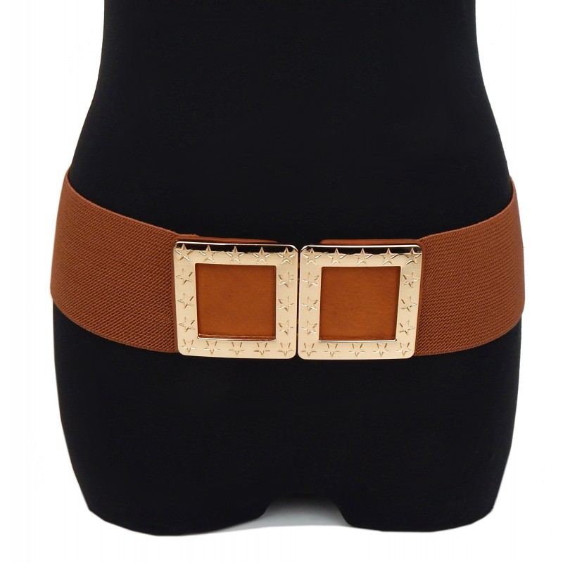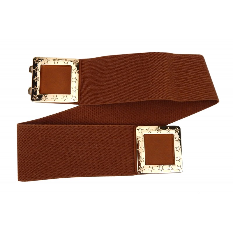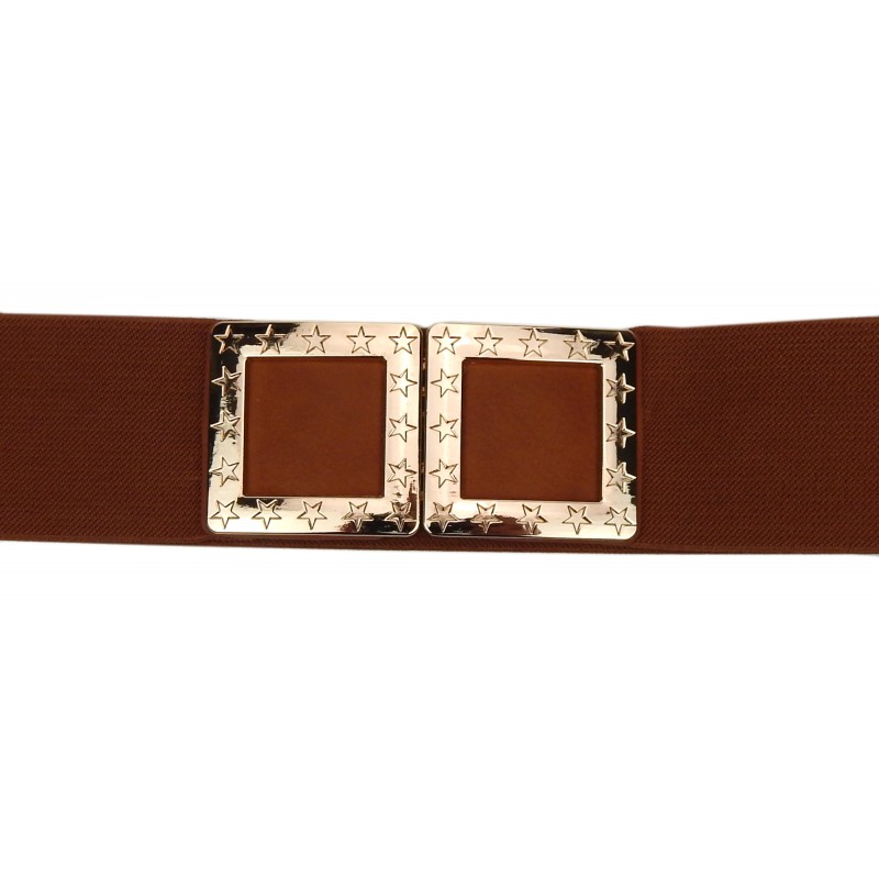 Details: dehnbarer brauner Gürtel mit Statementschnalle -