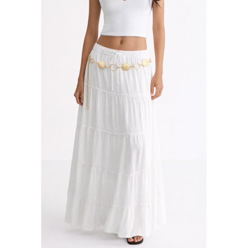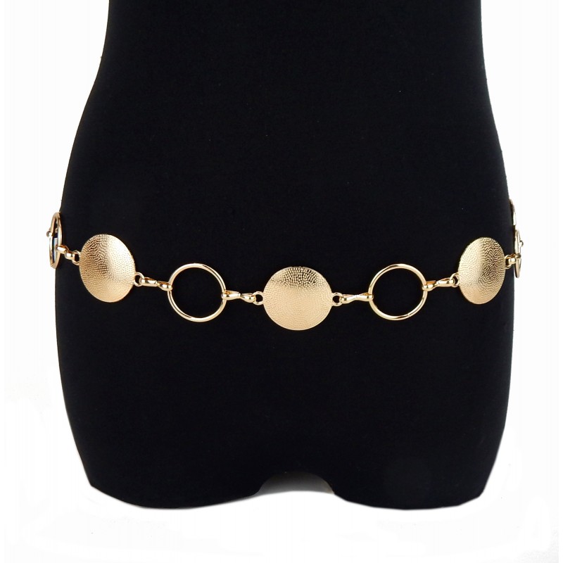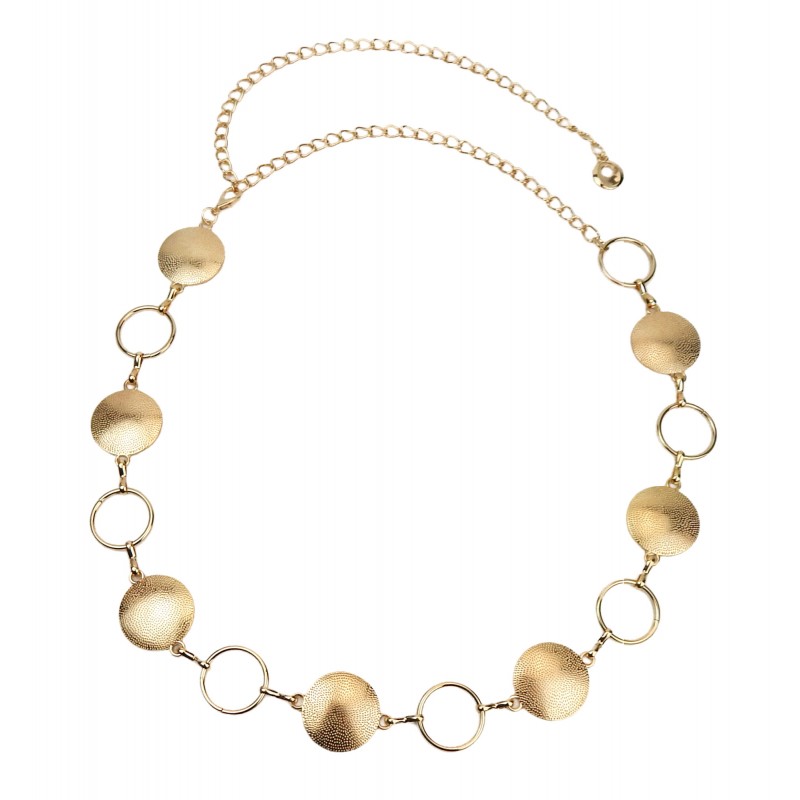 Der goldfarbene Kettengürtel von Ella Jonte verleiht jedem