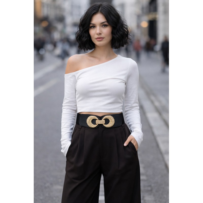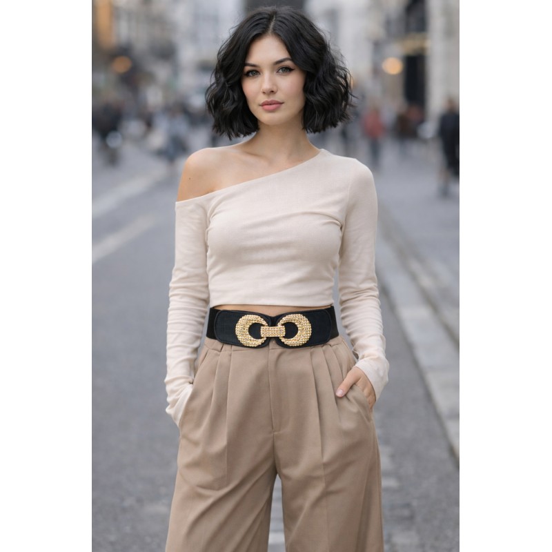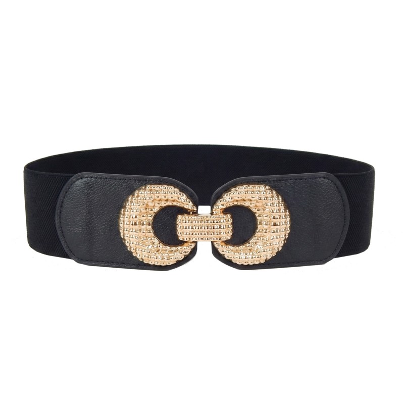 Die markante, goldfarbene Statement-Schnalle sorgt für einen luxuriösen Blickfang und betont gekonnt die Taille. Mit einer Breite von 6 cm (an der Schnalle 6,4 cm) formt der Gürtel eine schöne Sanduhr-Optik und wertet schlichte Looks im Handumdrehen auf.