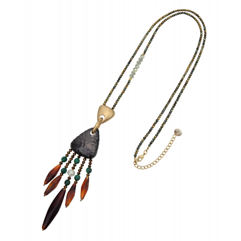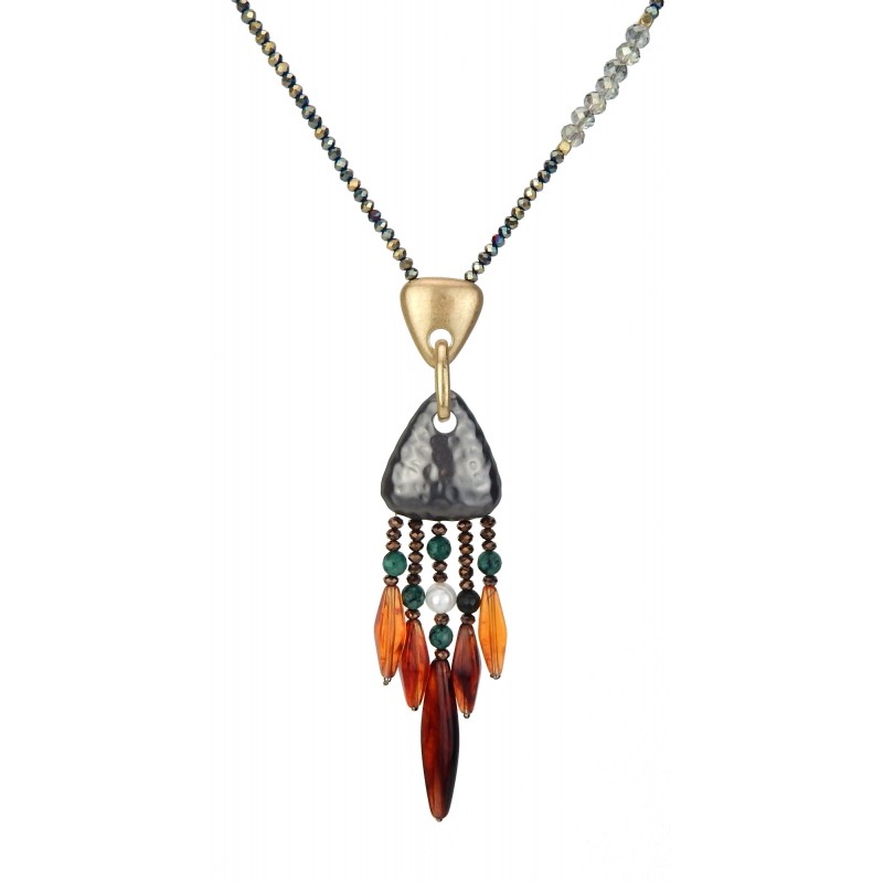 Anhänger: dekorativer Boho-Anhänger mit farbigen Perlen & Quaste