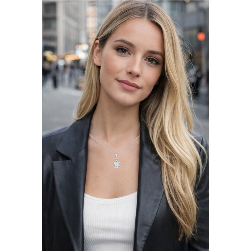 Diese filigrane Halskette mit zauberhaftem Sternanhänger ist ein echter Blickfang. Im Zentrum des Sterns strahlt ein funkelnder Solitär-Stein, der das Licht wunderschön reflektiert und dem Schmuckstück eine elegante, feminine Note verleiht.