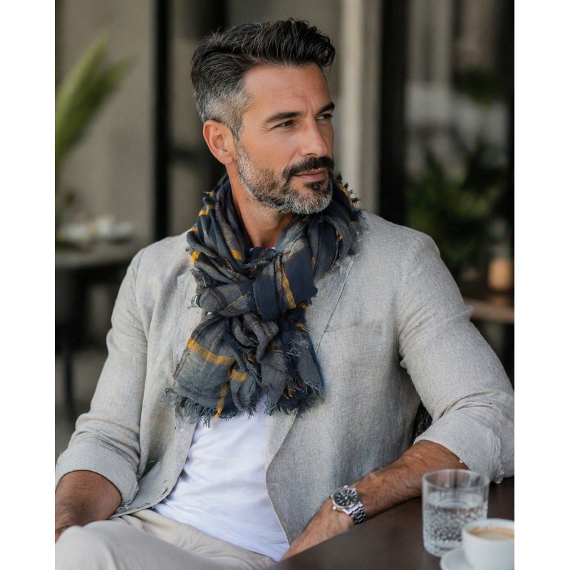 Ella Jonte Herrenschal schwarz grau gestreift...