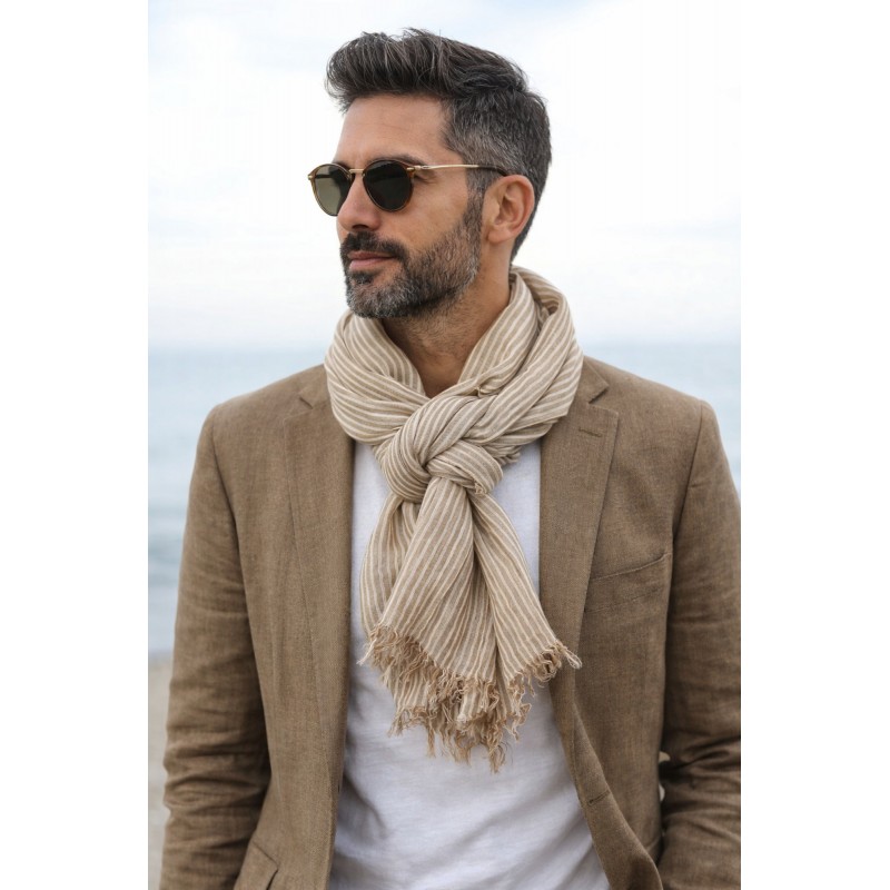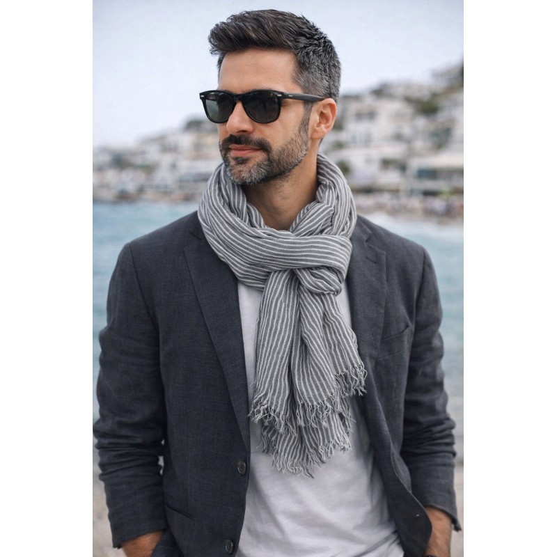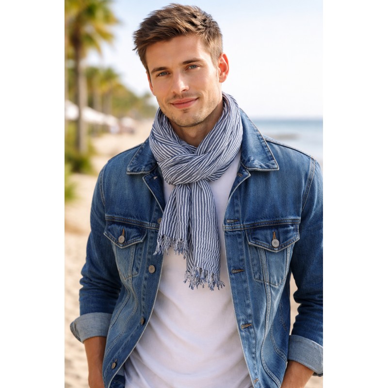 Der Ella Jonte Herrenschal in Blau, Beige oder Grau ist das ideale Accessoire