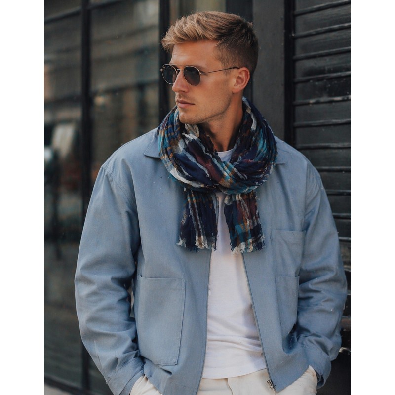 Ella Jonte Herrenschal blau weiss Baumwolle...