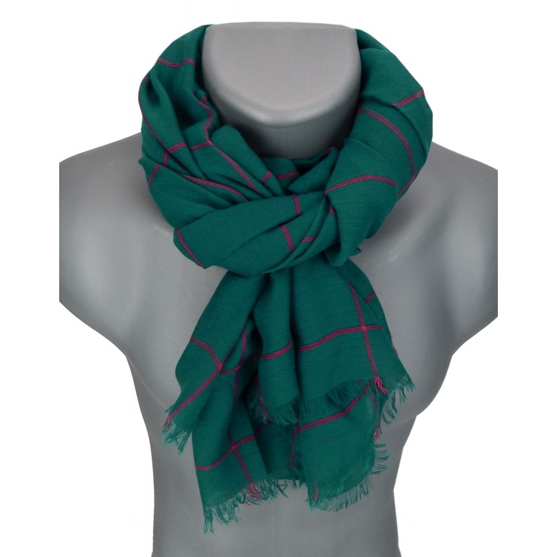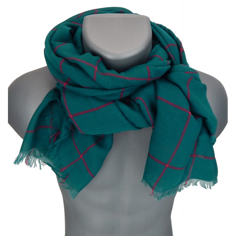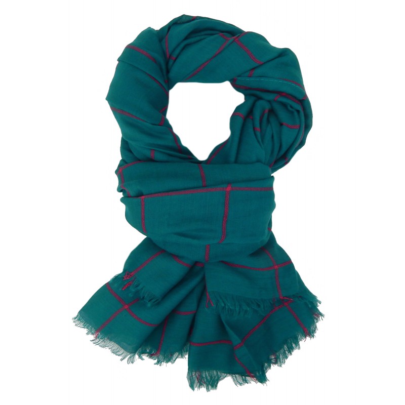 Ella Jonte breiter Herrenschal Schal grün blau Ton petrol mit roten Streifen