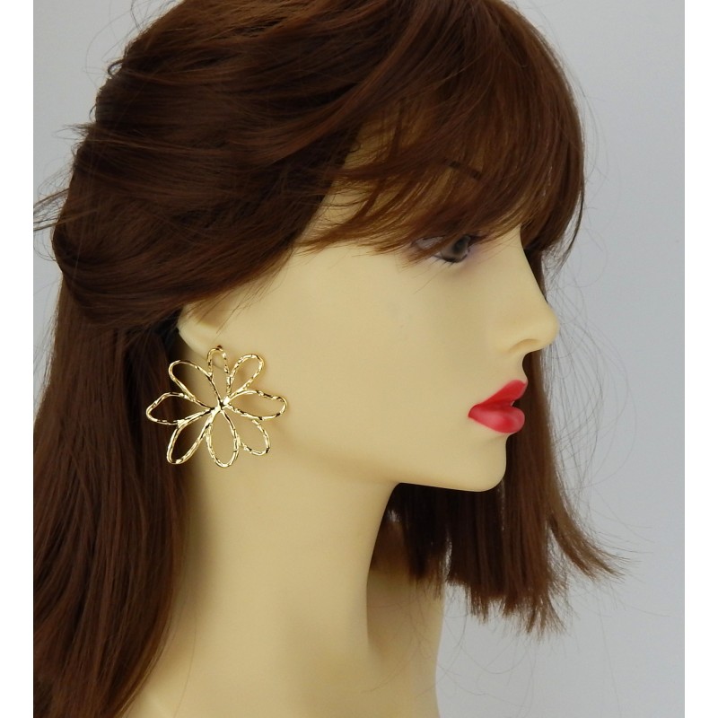 Die großen goldfarbenen Ohrringe in Form einer Blume