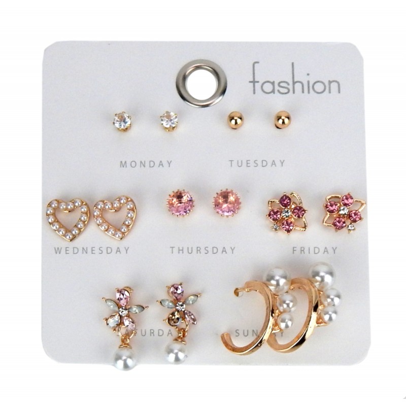 Ohrsteckern in verschiedenen Designs wie Blumen, Herzen und Perlen.